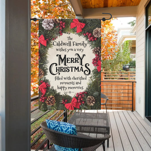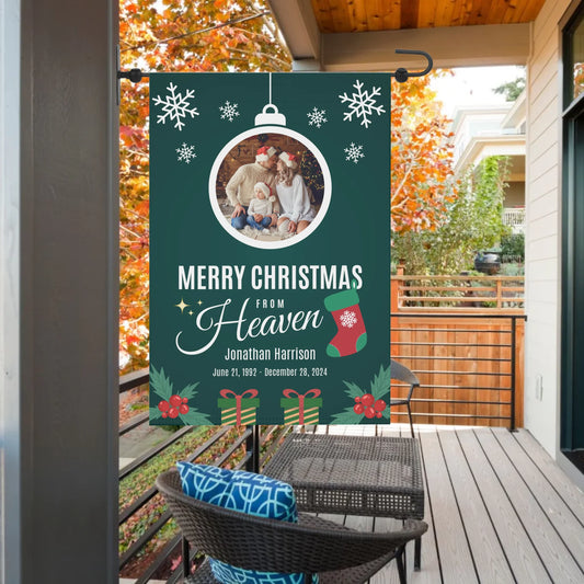 Modern Green Merry Christmas From Heaven Memorial Garden Flag