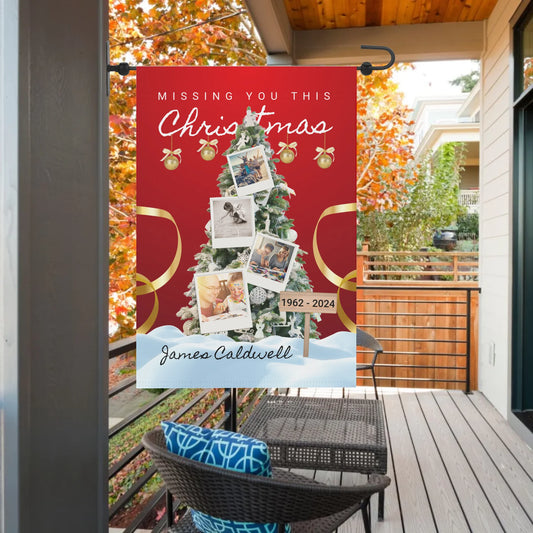 Missing You Christmas Tree Photo Collage Memorial Garden Flag