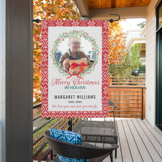Vintage Merry Christmas In Heaven Memorial Garden Flag